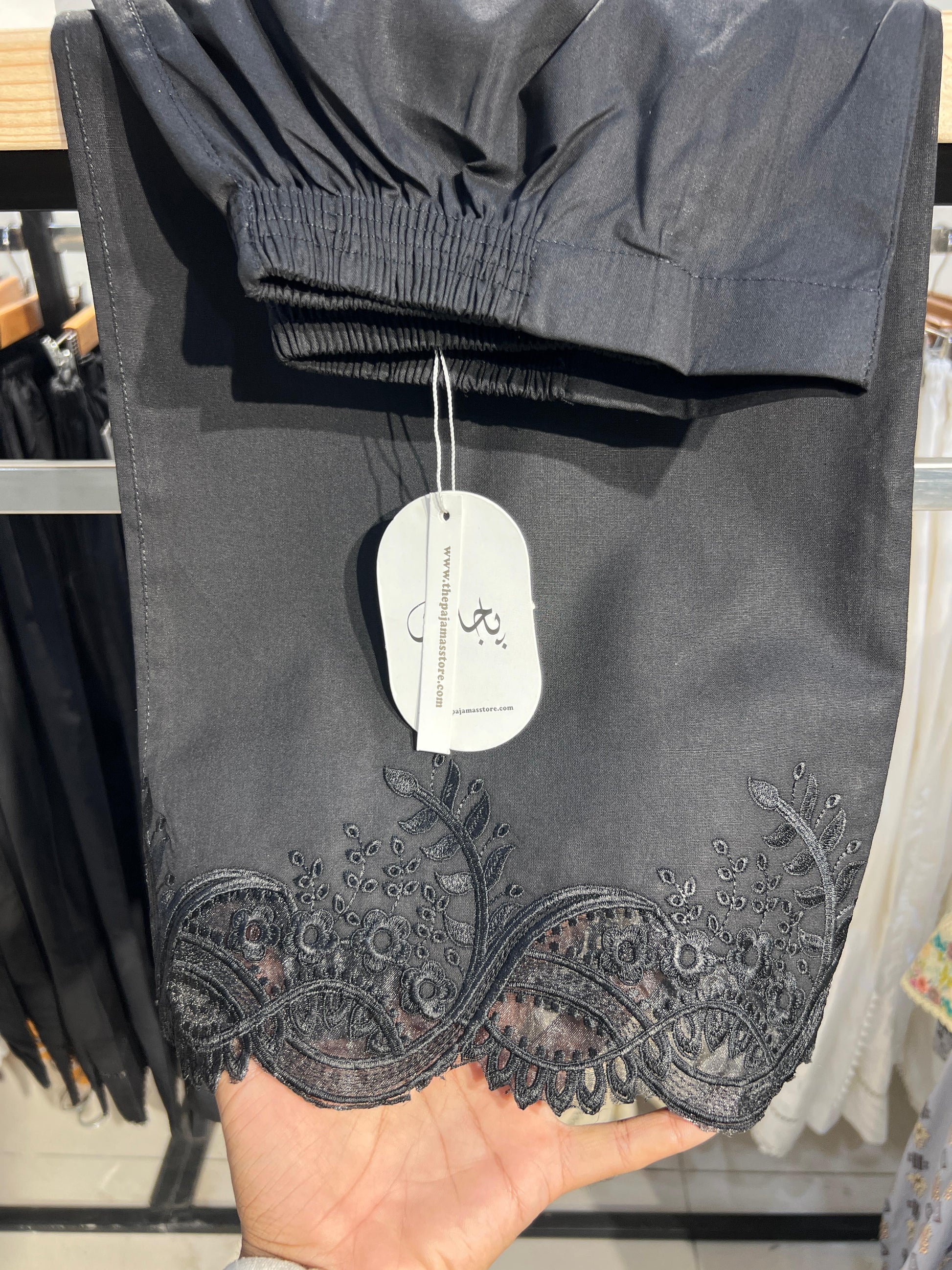 Crafted From Premium Soft Cotton, This Fancy Embroidery Palazzo Offers A Comfortable Standard Fit Without Sizing Variation. The Intricate Embroidery Adds A Refined Touch, Making It Suitable For Both Casual And Formal Occasions. Available In Three Elegant Shades—Off White, Skin, And Black—This Versatile Piece Combines Style And Comfort With Expert Precision.